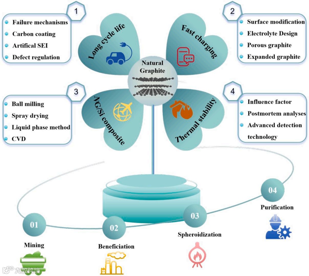 先进锂离子电池天然石墨负极:挑战、进展和展望