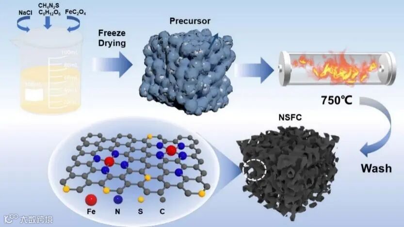 图1. Fe修饰N/S掺杂多孔炭示意图。