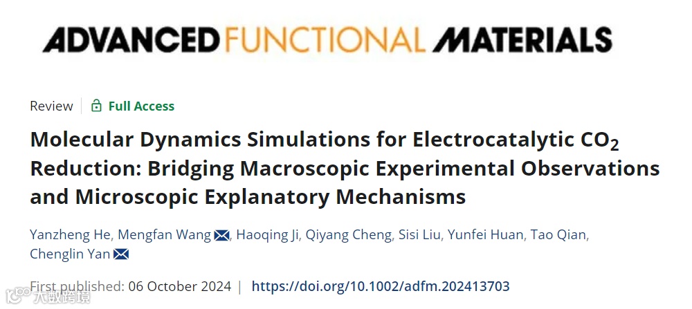 近日,苏州大学晏成林/王梦凡团队在国际知名期刊Advanced Functional Materials上发表题为“Molecular Dynamics Simulations for Electrocatalytic CO2 Reduction: Bridging Macroscopic Experimental Observations and Microscopic Explanatory Mechanisms”的综述文章。本文章详细介绍了现在常用的分子动力学模拟技术,同时汇总了近期分子动力学模拟技术在二氧化碳还原领域的应用进展。