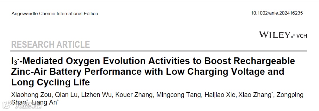 I3-介导的氧析出活性用于探索低充电电位以及长循环寿命的锌空气电池