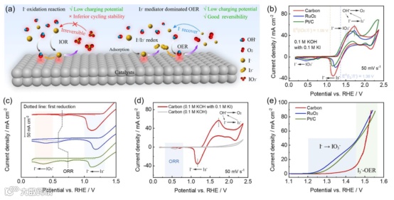 图2. 乙炔黑催化剂在碱性介质中I3-/I-氧化还原反应的探索。