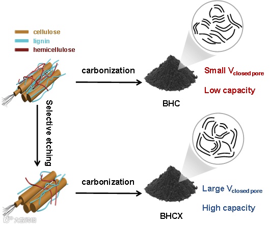 木质纤维素制备钠离子电池高容量硬碳阳极的解构工程