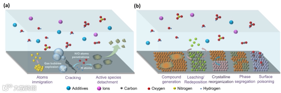 表面毒化:当反应物或中间体中含有未成对电子或空轨道时,可能与催化剂表面的活性位点生成表面配位化合物,堵塞活性位点。合理设计电催化环境可以缓解毒化效应,使毒化物质重新成为电催化的原料。
