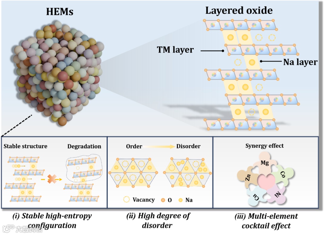 图2:高熵层状氧化物材料的主要特征和积极效应