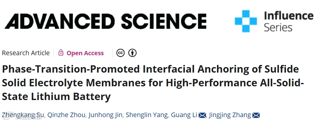 近日,来自东华大学的李光研究员、张晶晶副研究员,在国际知名期刊Advanced Science上发表题为“Phase-Transition-Promoted Interfacial Anchoring of Sulfide Solid Electrolyte Membranes for High-Performance All-Solid-State Lithium Battery”的文章。本研究创新性地提出了一种无溶剂参与的“固-液转变”策略,有效调控了硫化物固态电解质与锂金属负极界面的离子和电子传输行为,从而成功构建出兼具高能量密度和优异界面稳定性的硫化物基全固态锂电池。