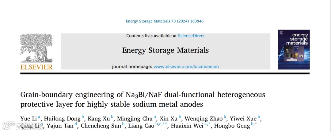 高密度双功能Na3Bi/NaF异质晶界抑制钠枝晶不可控生长