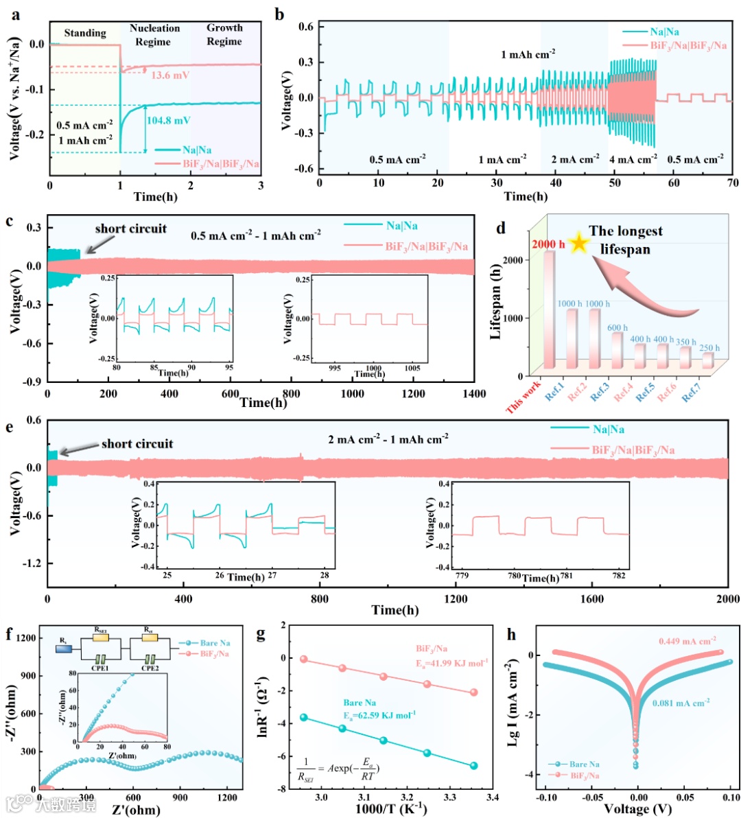 图3 BiF3/Na电极的对称电池电化学性能测试。