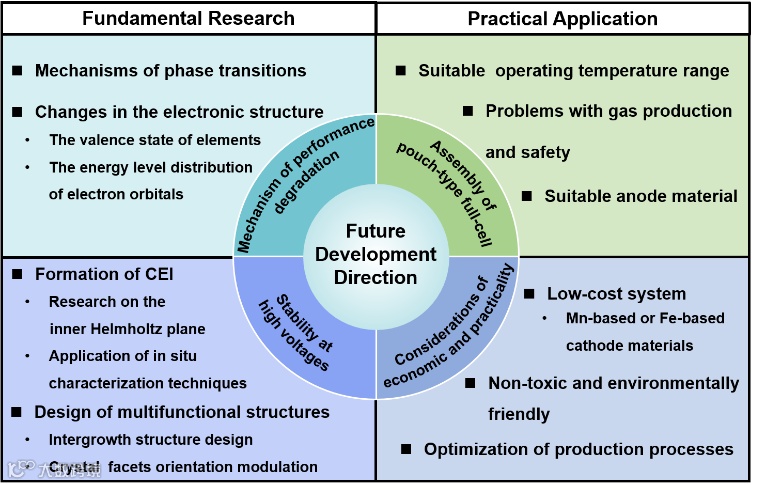 图7 层状氧化物正极的未来发展方向:从基础研究到实际应用。