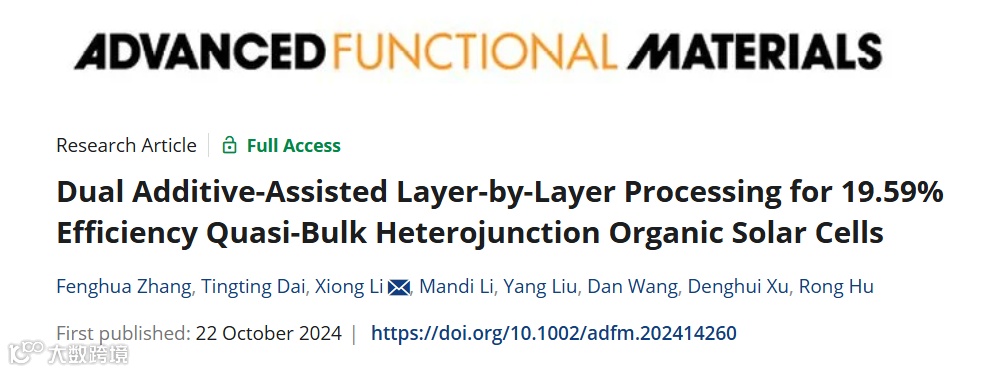 双添加剂助力打造高效率准体异质结有机太阳能电池