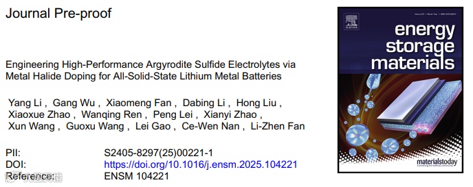 通过掺杂金属卤化物为全固态锂金属电池设计高性能硫银锗矿型硫化物电解质