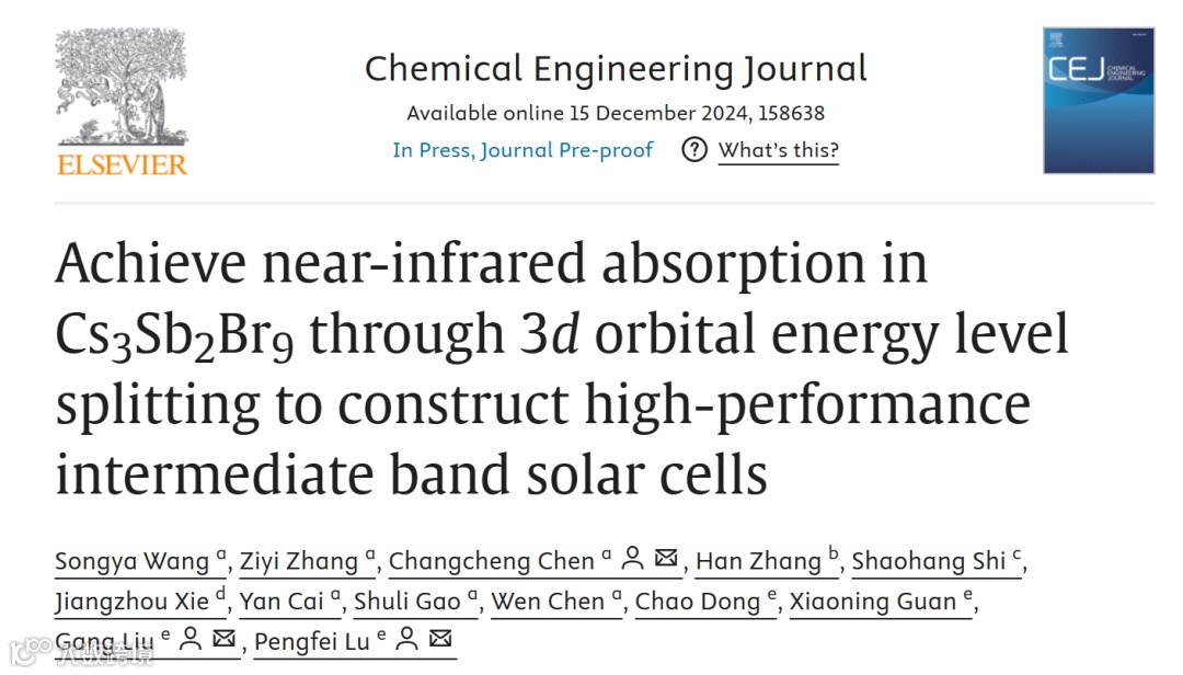 通过3d轨道能级分裂实现Cs3Sb2Br9的近红外吸收,构建高性能的中间带太阳能电池