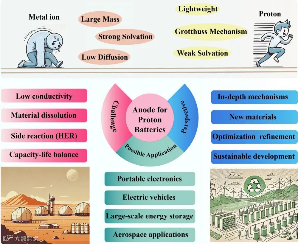 图1. 质子电池负极材料进展与前景示意图