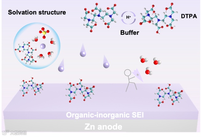 在DTPA添加剂的作用下,不仅实现了锌的均匀沉积,而且还有效抑制了锌阳极的腐蚀以及析氢反应等。因为其具有稳定pH值的作用,从而减少了惰性副产物ZHS的累积。