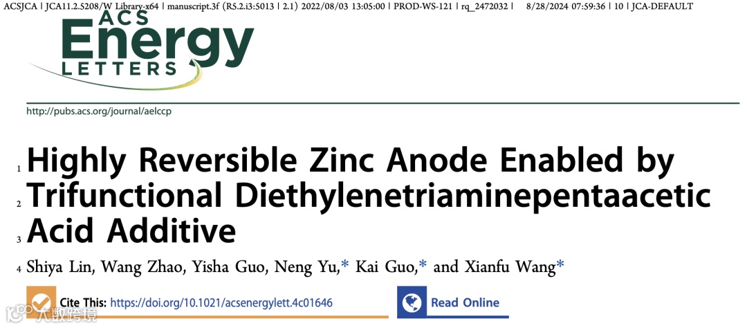 东华理工大学,华南理工大学,电子科技大学, ACS Energy Letters:三功能二乙烯三胺五乙酸添加剂实现高可逆锌阳极