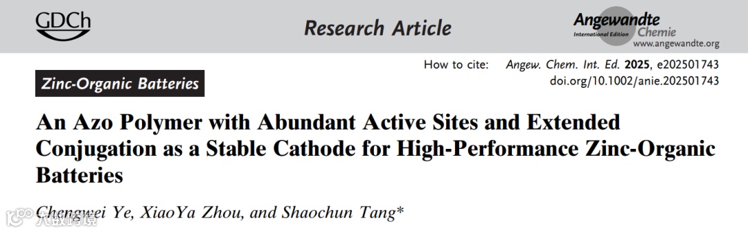 可充电水系锌离子电池,特别是锌有机电池由于高理论比容量、安全环保等优势引起了研究者们的广泛关注。然而,固有结构特性和分子任意堆积造成有机阴极材料的电子电导率很低,使有机锌电池的能量密度偏低。通过复合无机导电材料(如石墨烯、碳纳米管等)可以在一定程度上提升电导率,但这些无机导电剂的加入会减小电池的实际质量比容量。此外,有机小分子容易在电解质中溶解,严重影响电池的能量转换效率和循环稳定性。因此,阴极有机化合物自身电子电导率和抗水溶解性的提升,是从根本上解决以上难题的有效途径。