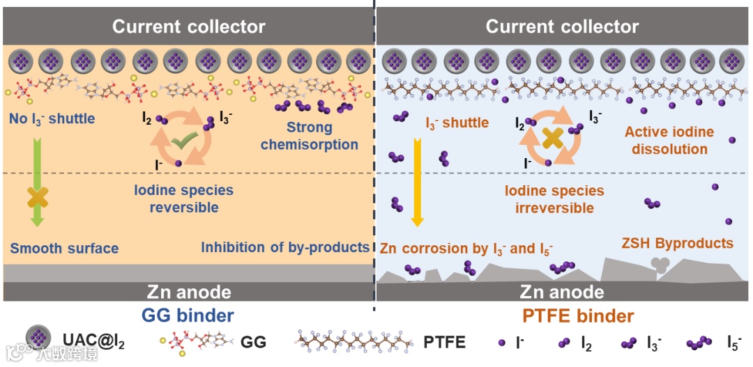 锌碘电池(ZIBs)因其固有的成本效益、更高的操作安全性和可观的理论容量而成为下一代电池的有力候选者。然而,载碘正极(UAC@I2)活性碘溶解和多碘化物穿梭效应等挑战阻碍了ZIBs的进一步发展。粘结剂作为UAC@I2重要的基本组成部分,通过设计新型功能性粘结剂,利用粘结剂材料中丰富的活性官能团对碘物种的强化学吸附作用,从而抑制活性碘的溶解和多碘化物的穿梭效应,被认为是最具有成本效益的选择。
