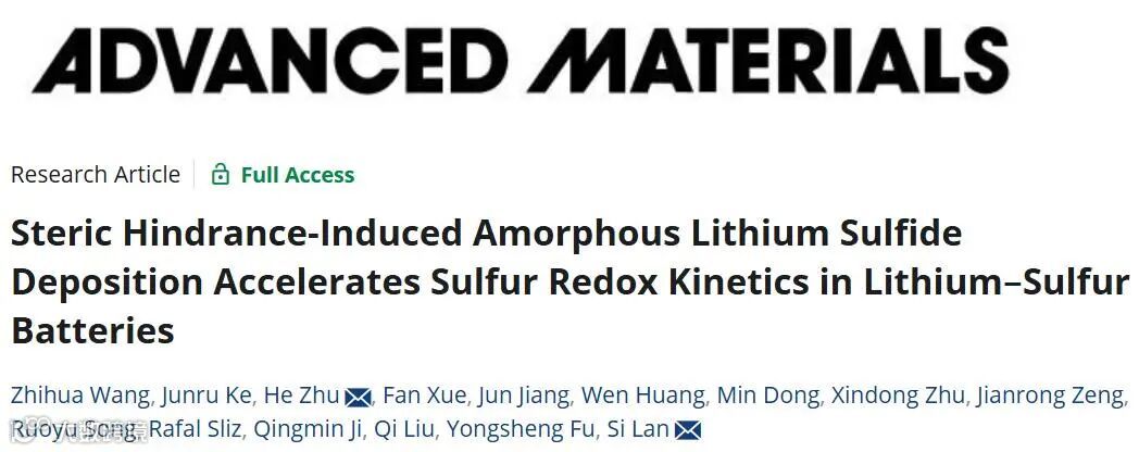 空间位阻诱导的非晶化Li2S沉积加速Li-S电池中的硫氧化还原动力学