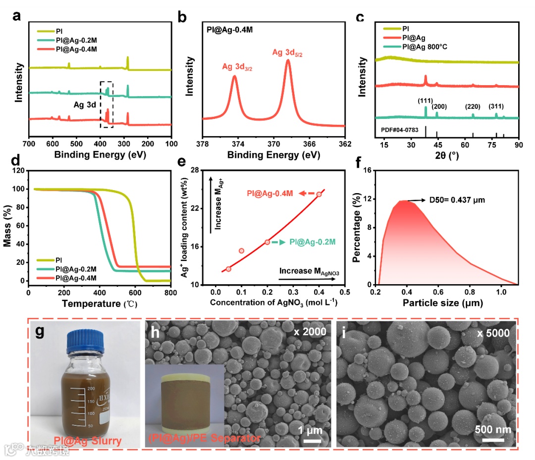 图二 大规模制备的PI@Ag微球浆料及功能改性隔膜