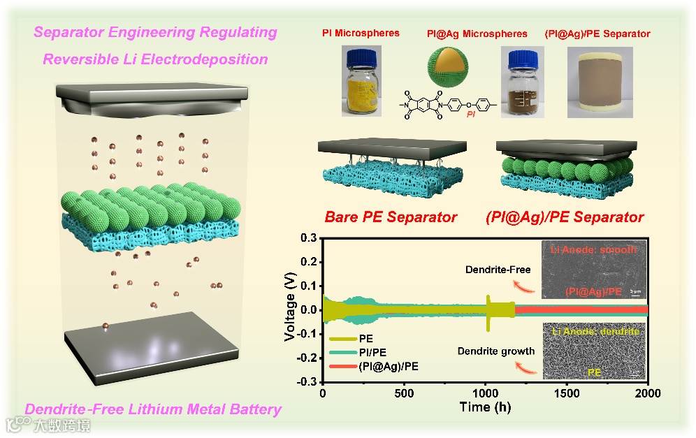 通过亲锂聚酰亚胺@银(PI@Ag)微球涂层实现的隔膜工程,用于调控Li的电化学沉积