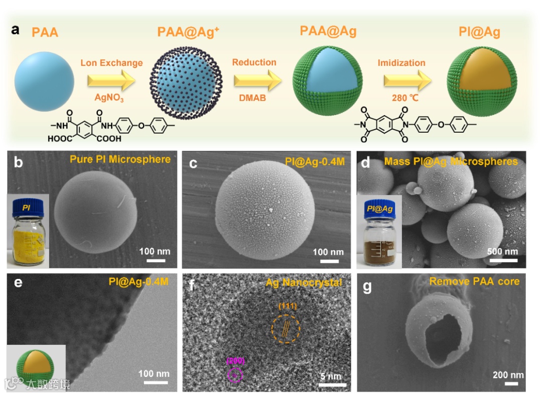 图一PI@Ag微球的制备及结构演变过程