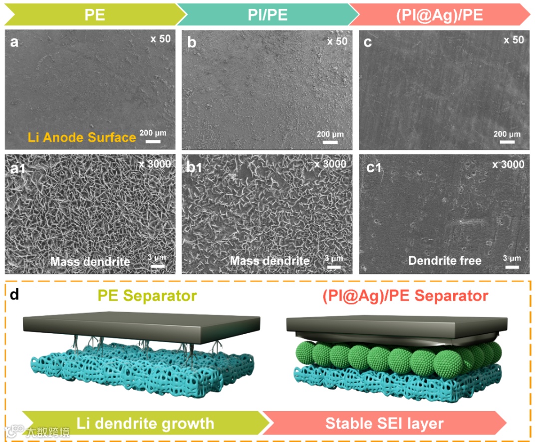 图三 PI@Ag功能隔膜诱导均匀锂沉积