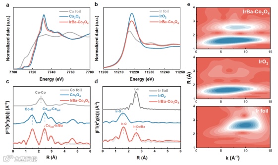 2.XANES显示IrBa-Co3O4中Ir的氧化态接近+4,未占据d轨道密度增加(图3b)。