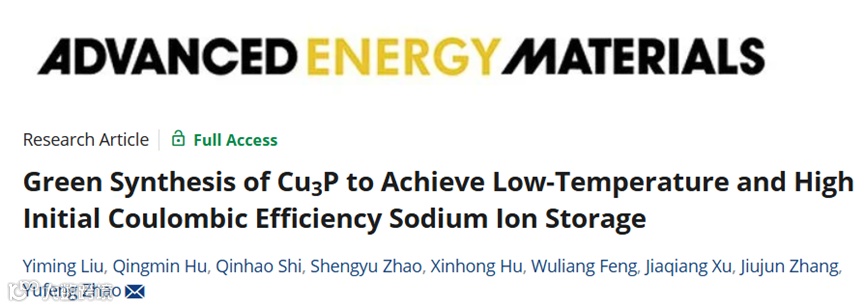 Liu, Y., Hu, Q., Shi, Q., Zhao, S., Hu, X., Feng, W., Xu, J., Zhang, J., & Zhao, Y. (2025). Green Synthesis of Cu₃P to Achieve Low-Temperature and High Initial Coulombic Efficiency Sodium Ion Storage. Advanced Energy Materials, 2500723.