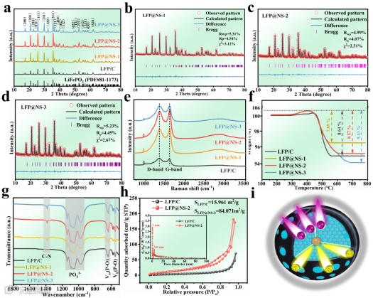 基于此,来自常州大学的任玉荣教授,在国际知名期刊Carbon上发表题为“Functionalized porous conductive carbon layer improves the low-temperature performance of LiFePO4 cathode material for lithium-ion batteries”的研究文章。该文章采用溶胶-凝胶法结合高温固相法制备了一种具有三维多孔结构的新型LFP@NS材料。引入硫脲充当碳源来包覆磷酸铁锂材料,同时,硫脲中的氮和硫元素也可以作为阴离子杂原子掺杂剂融入到碳基体中,通过提供大量的缺陷和活性位点来提高磷酸铁锂材料在低温下的离子扩散动力学,以实现改善低温下的电化学性能。