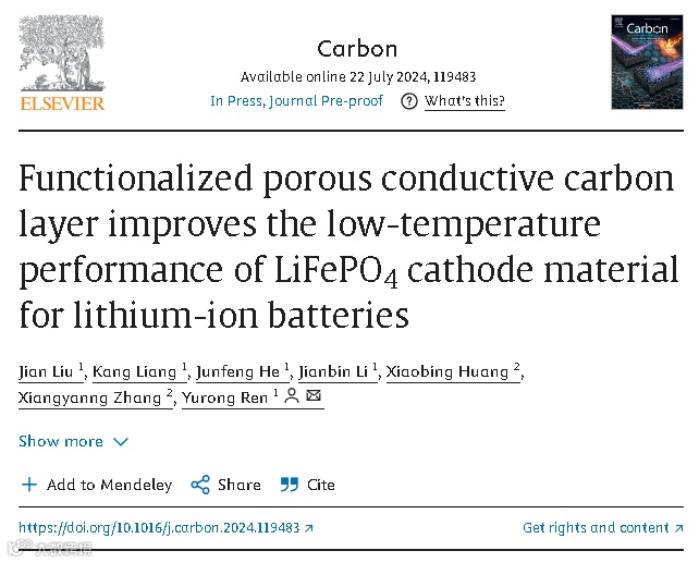 “Functionalized porous conductive carbon layer improves the low-temperature performance of LiFePO4 cathode material for lithium-ion batteries”