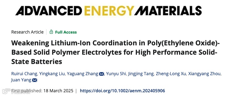 弱化PEO基固态电解质的锂离子配位以实现高性能固态电池