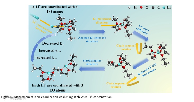 降低结晶度可以优化离子传输的动力学条件,弱化离子配位可以优化离子传输的热力学条件,二者协同作用才能实现Li+的有效传输。