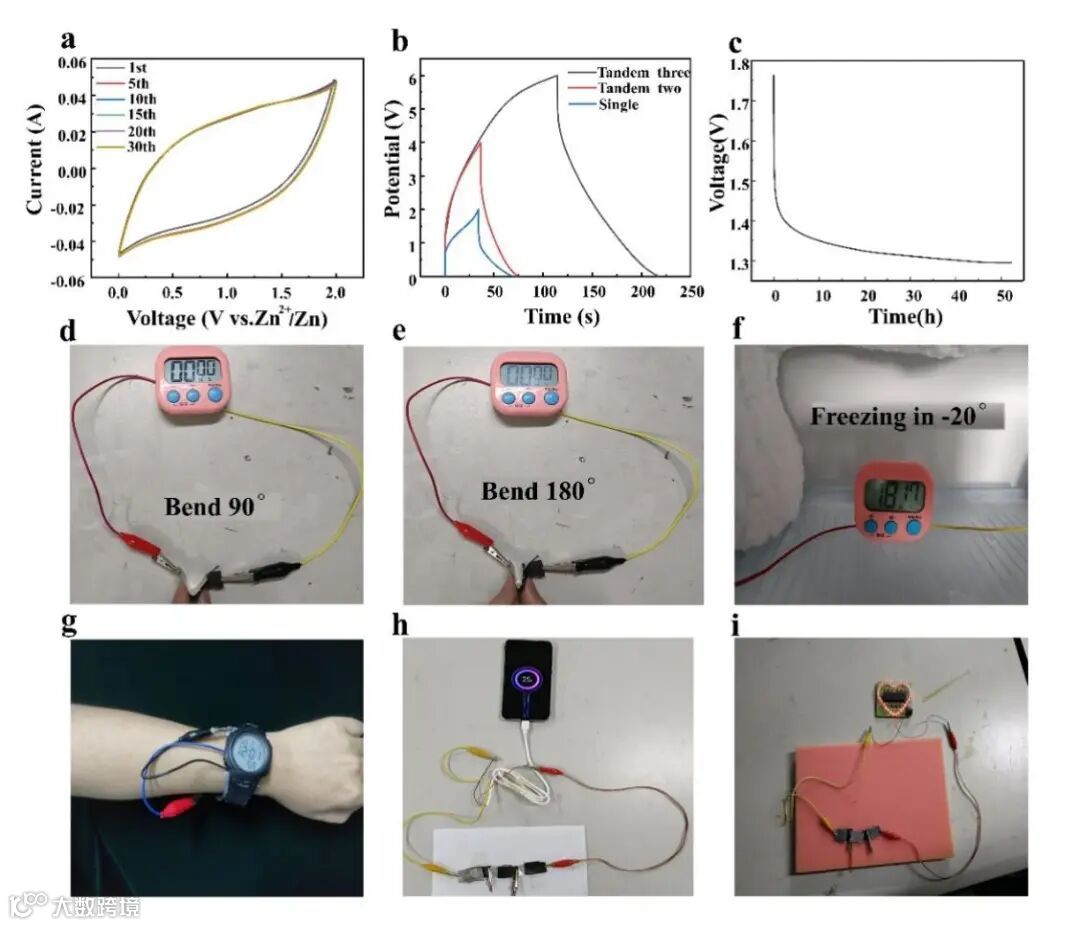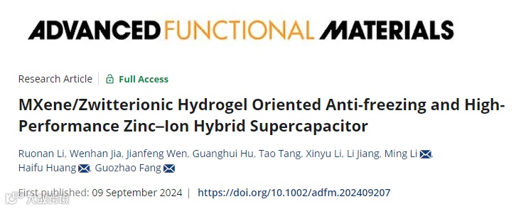 近日,来自桂林理工大学的李明教授、广西大学的黄海富副教授和中南大学的方国赵教授合作,在国际知名期刊ADVANCED FUNCTIONAL MATERIALS上发表题为“MXene/Zwitterionic Hydrogel Oriented Anti-freezing and High-Performance Zinc–Ion Hybrid Supercapacitor”的文章。该文章为ZIHCs设计了一种负载有羧甲基纤维素和MXene的两性离子水凝胶电解质 (ZHE),其显示出优异的抗冻性和高输出电压。羧甲基纤维素和MXene增强了两性离子水凝胶电解质的柔韧性和导电性。此外,当ZnCl2被引入到凝胶电解质中,它引起离子传输速率的增加,这使得水凝胶的操作温度 (-40 ° C-25 °C) 变宽。结果,基于ZHE的Zn // AC ZIHCs显示出2 V的高电压窗口,137 Wh kg− 1的高能量密度 (比容量) (247 F g− 1),以及可穿戴设备的潜力。这项研究将为设计具有宽电压窗口,高能量密度和高实用性的水凝胶ZIHCs提供有效的策略。