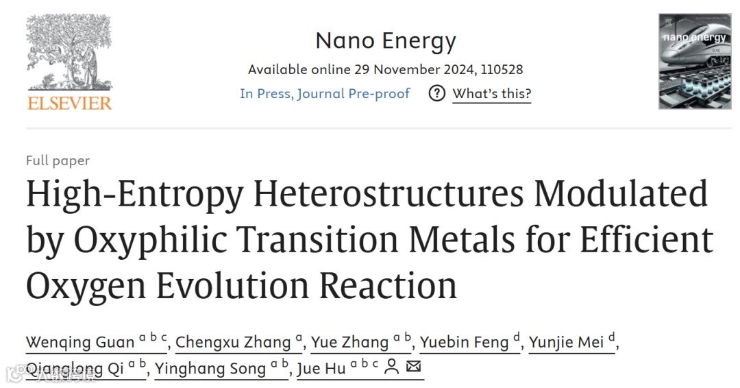 近日,冶金与能源工程学院胡觉教授团队在国际顶级学术期刊《Nano Energy》(IF 16.8)以昆明理工大学为第一完成及通讯单位在线发表题为“High-Entropy Heterostructures Modulated by Oxyphilic Transition Metals for Efficient Oxygen Evolution Reaction”的研究文章。昆明理工大学胡觉教授为论文的通讯作者。该文章首次展示了一种动力学行为调节策略,通过加入第五种金属亲氧性金属元素x(x= Sc,Ti,V,Cr)诱导催化剂重构形成HEA-HEO异质结构。这项工作为设计先进高熵电催化剂用于电催化OER反应方面提供了新的视角。