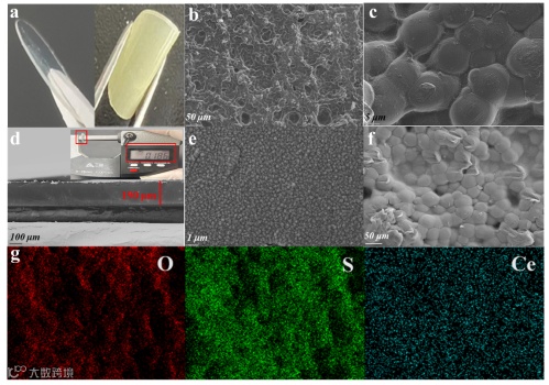 图2. 聚合物复合电解质的形貌图及表面EDS元素分析