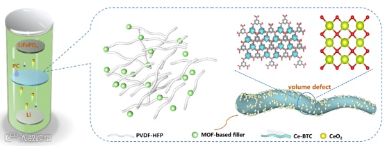 由于MOFs的结构缺陷已被研究界认知,因此提出了将缺陷引入MOFs结构中作为一种改变其性能表现的方式,以实现预期的应用。缺陷的引入可以增加MOFs中的自由体积和活性位点,提高聚合物电解质(PEs)中的离子浓度,并有助于提升PEs的稳定性和电化学性能。通过研究MOFs材料的纳米粒子排列和金属离子传输路径,可以调整其微观结构和化学组成,从而改善聚合物电解质(PEs)与电极材料之间的界面相容性,有效提升PEs的离子迁移能力和电解质稳定性。因此,有通过战略性设计定制MOFs的特定结构,以实现目标性能的优化。