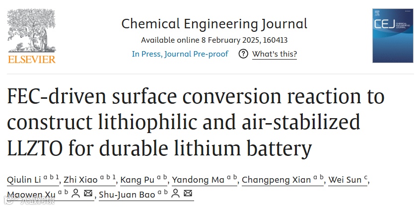 近日,来自西南大学的徐茂文和包淑娟教授,在国际知名期刊Chemical Engineering Journal上发表题为“FEC-driven surface conversion reaction to construct lithiophilic and air-stabilized LLZTO for durable lithium battery”的研究论文。
