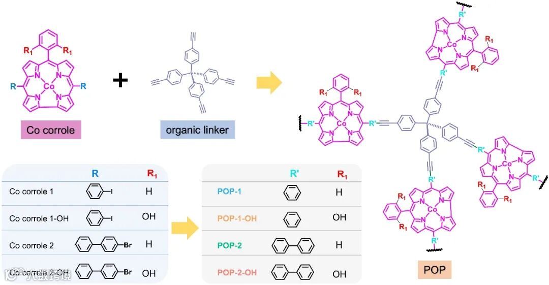 图2. 合成钴咔咯基多孔有机聚合物的示意图