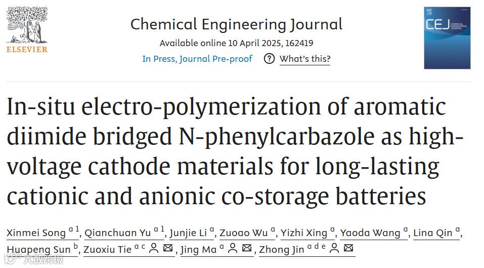 基于阴阳离子共同存储机制的原位电聚合芳香族二亚胺材料用于高电压长循环锂电池