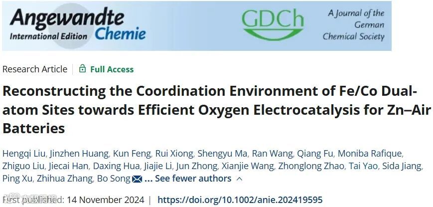 重构Fe/Co双原子位点的配位环境以实现高效的锌空气电池氧电催化