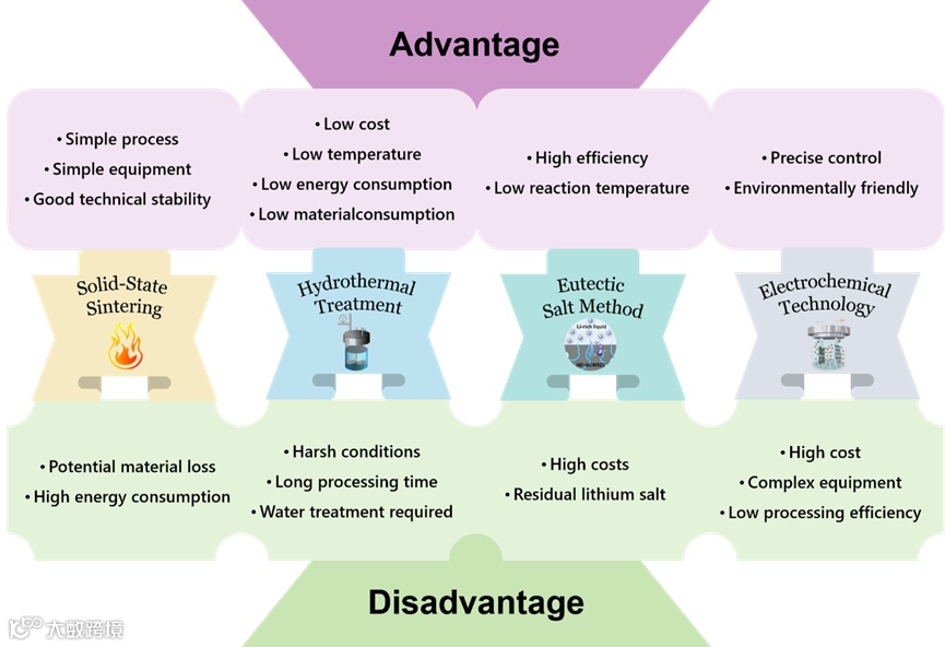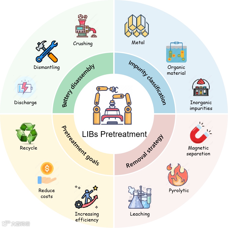 创新性的对预处理和除杂工艺这两个关键因素进行了总结和分析,强调其在提升电池直接再生回收效率中的重要性。