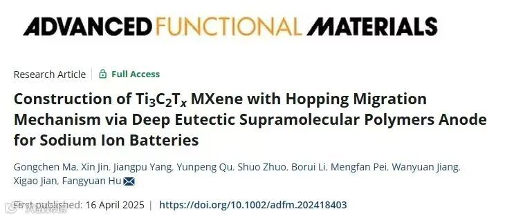 大连理工大学胡方圆AFM: 基于“跳跃迁移机制”的深共晶超分子聚合物/MXene钠离子电池复合负极材料