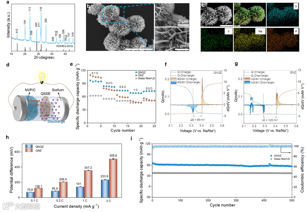 图7. Na|QSSEs|NVP/C电池的电化学性能