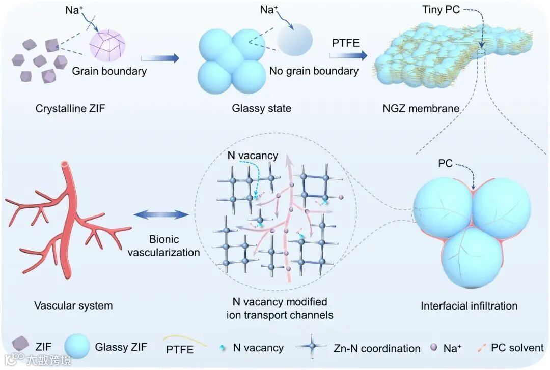 仿生血管化玻璃态MOF电解质用于准固态钠金属电池