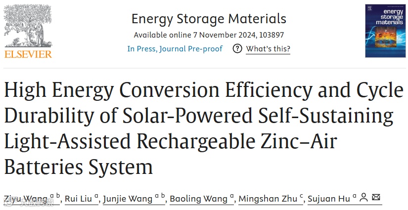 太阳能自供电光辅助锌-空气电池系统的高能量转换效率和循环耐久性