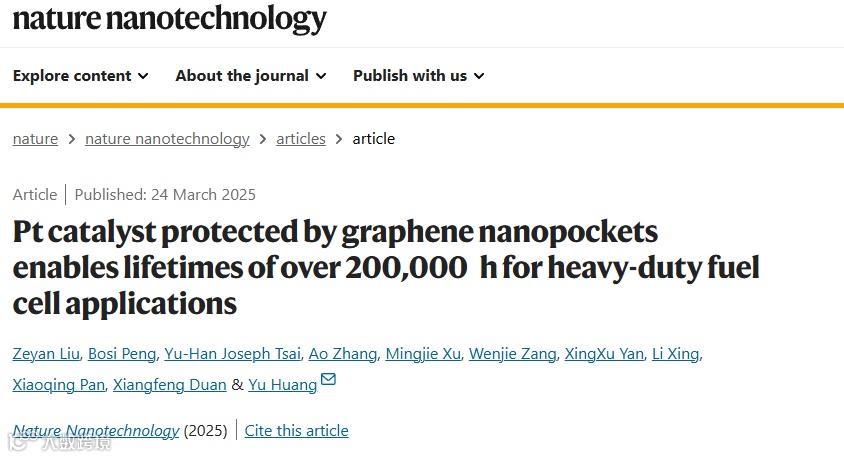 石墨烯包覆铂纳米催化剂实现超20万小时重型应用燃料电池预测寿命