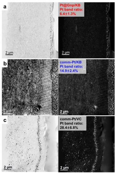 图5. 膜电极横截面分析铂溶解情况。