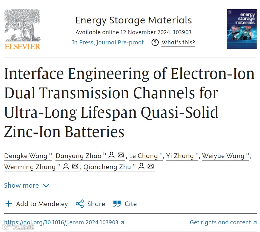 表面电子离子双传输通道实现超长寿命准固态锌离子电池