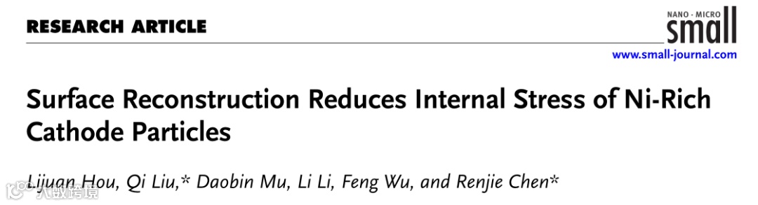 Surface Reconstruction Reduces Internal Stress of Ni-Rich Cathode Particles. Lijuan Hou, Qi Liu,* Daobin Mu, Li Li, Feng Wu, and Renjie Chen*, Small 2024, 2406495.