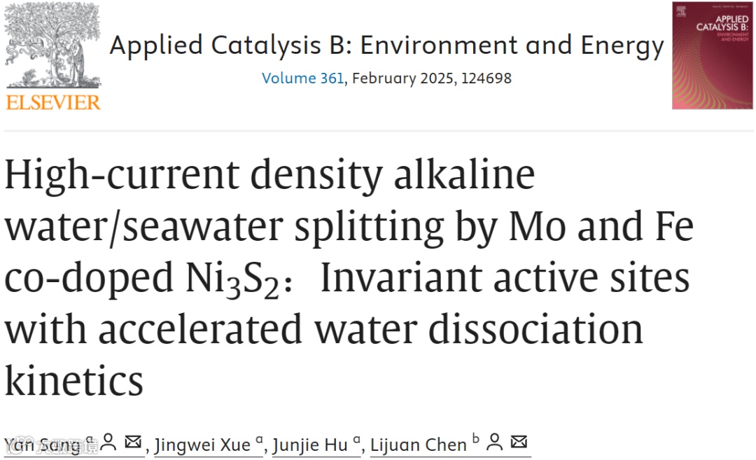 Mo,Fe共掺杂Ni3S2的大电流密度碱性水/海水分解:具有加速水分解动力学的不变活性位点