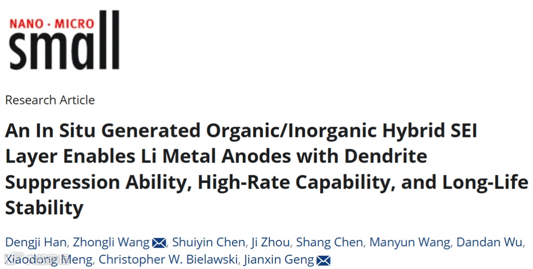 通过原位构筑有机/无机杂化SEI层来有效抑制锂金属负极枝晶生长、显著提高电池倍率性能和循环稳定性